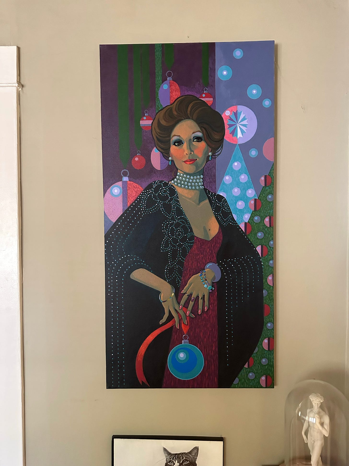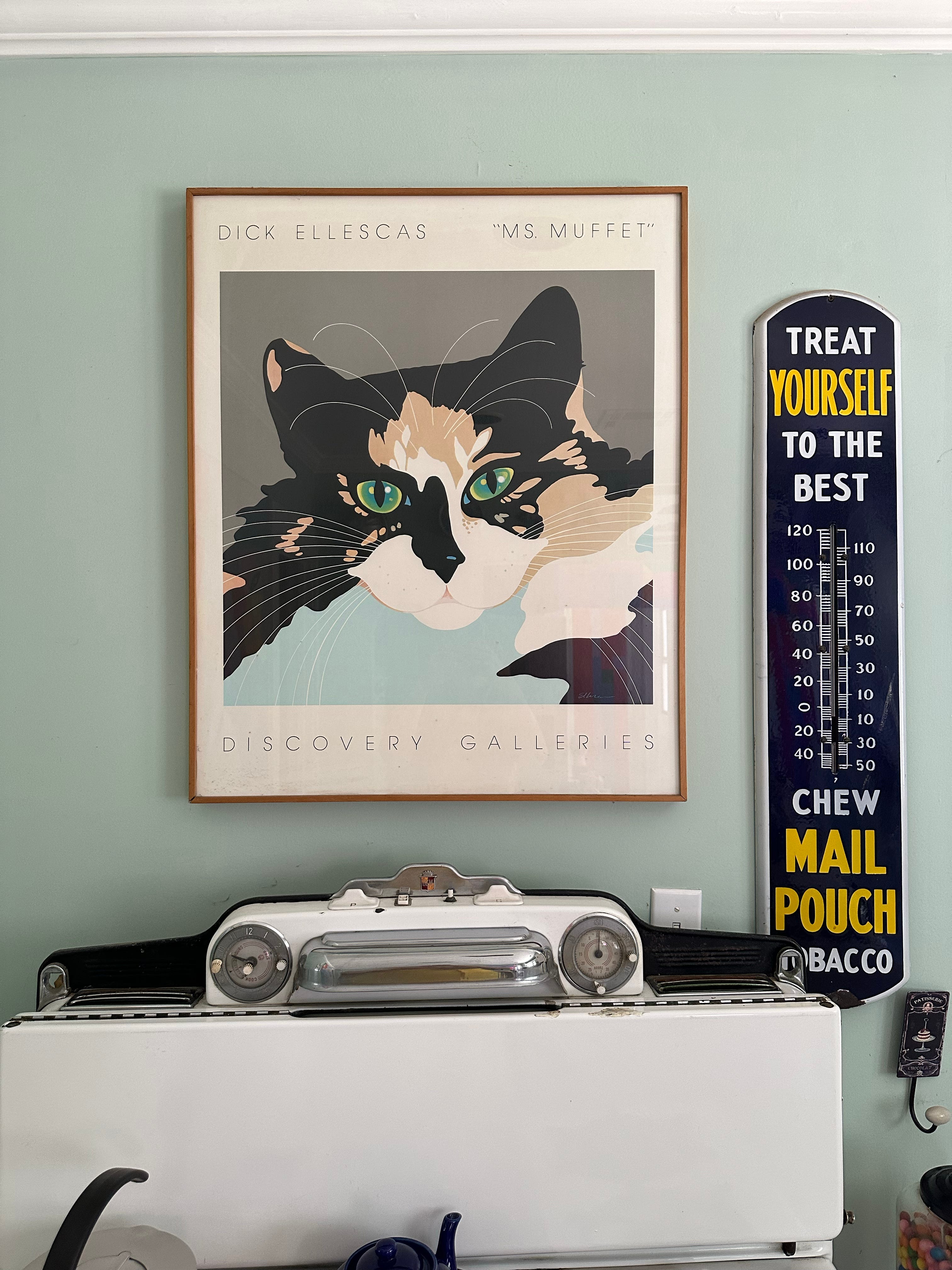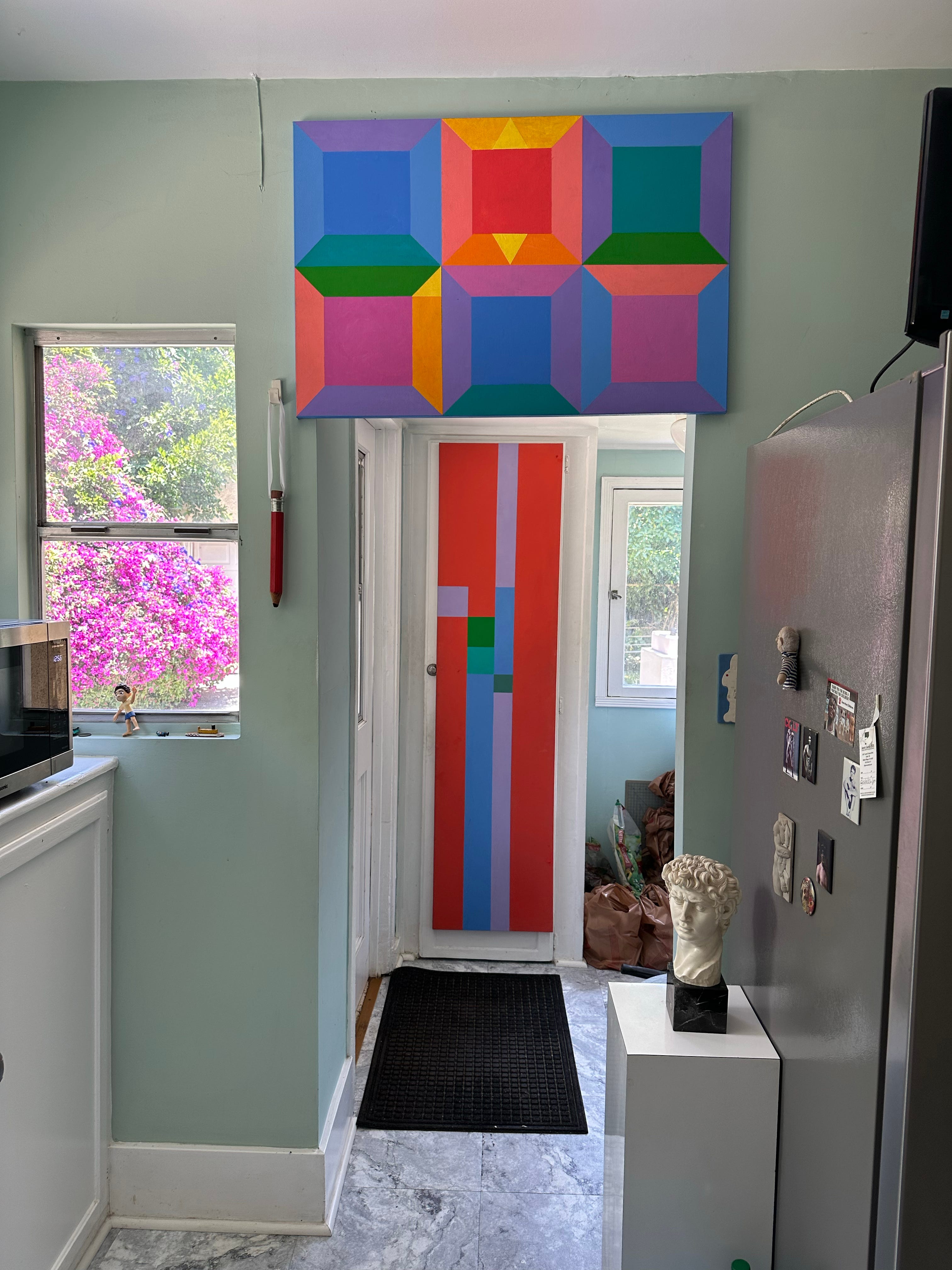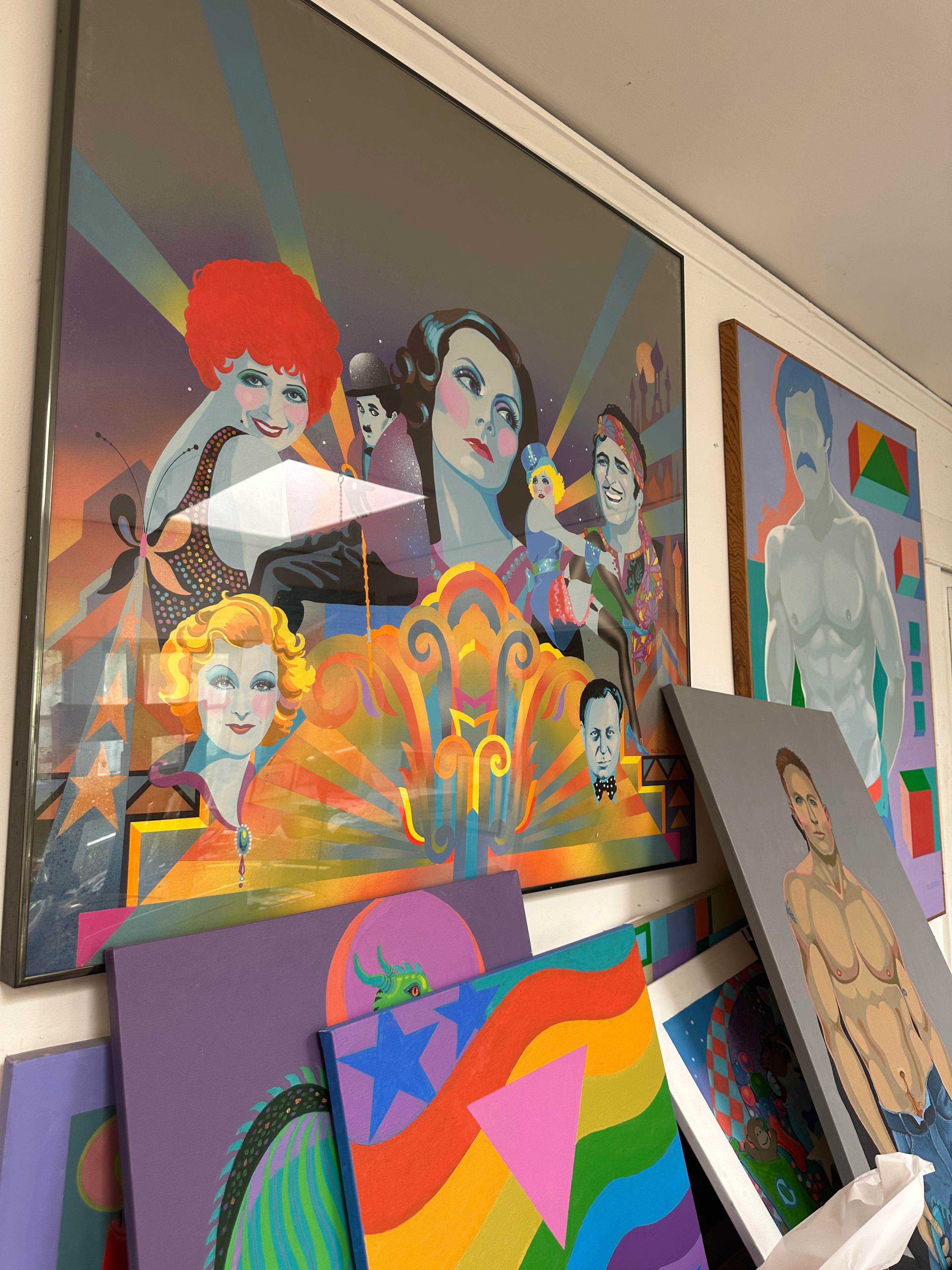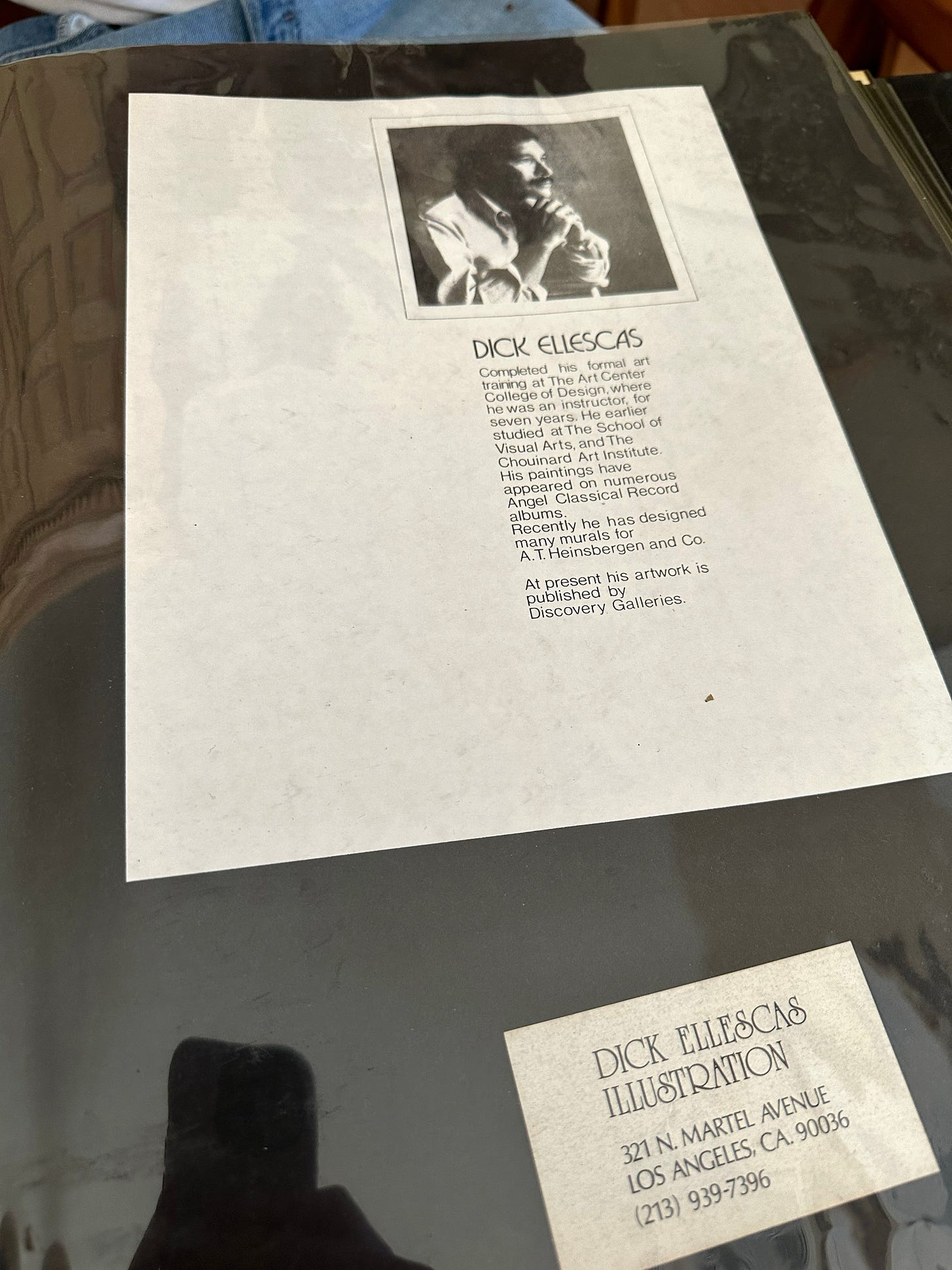 Over fifteen years, I scanned and saved every one of his Cosmo illustrations, then began looking for more of his work—turning up dozens of album covers primarily for Angel’s classical and opera releases, movie posters, and a tiny poetry book (which I’ve featured in its entirety before)—but when I went looking for information on him as a person and an artist, I found almost nothing. Even deeper searches through newspaper archives revealed little more. Finally, in 2023, I mailed a letter to an address I had found, unsure if it was the correct person or what condition he might be in. I was overjoyed when he called me a week later, inviting me to visit him the next time I was in Los Angeles. In May 2023, I visited the then 86-year-old artist at his small bungalow. He met me at the door with a graphic color field painting he had made for me. With his artwork covering almost every surface, Dick was still painting daily, still doing what he loved, and was filled with so much gratitude.