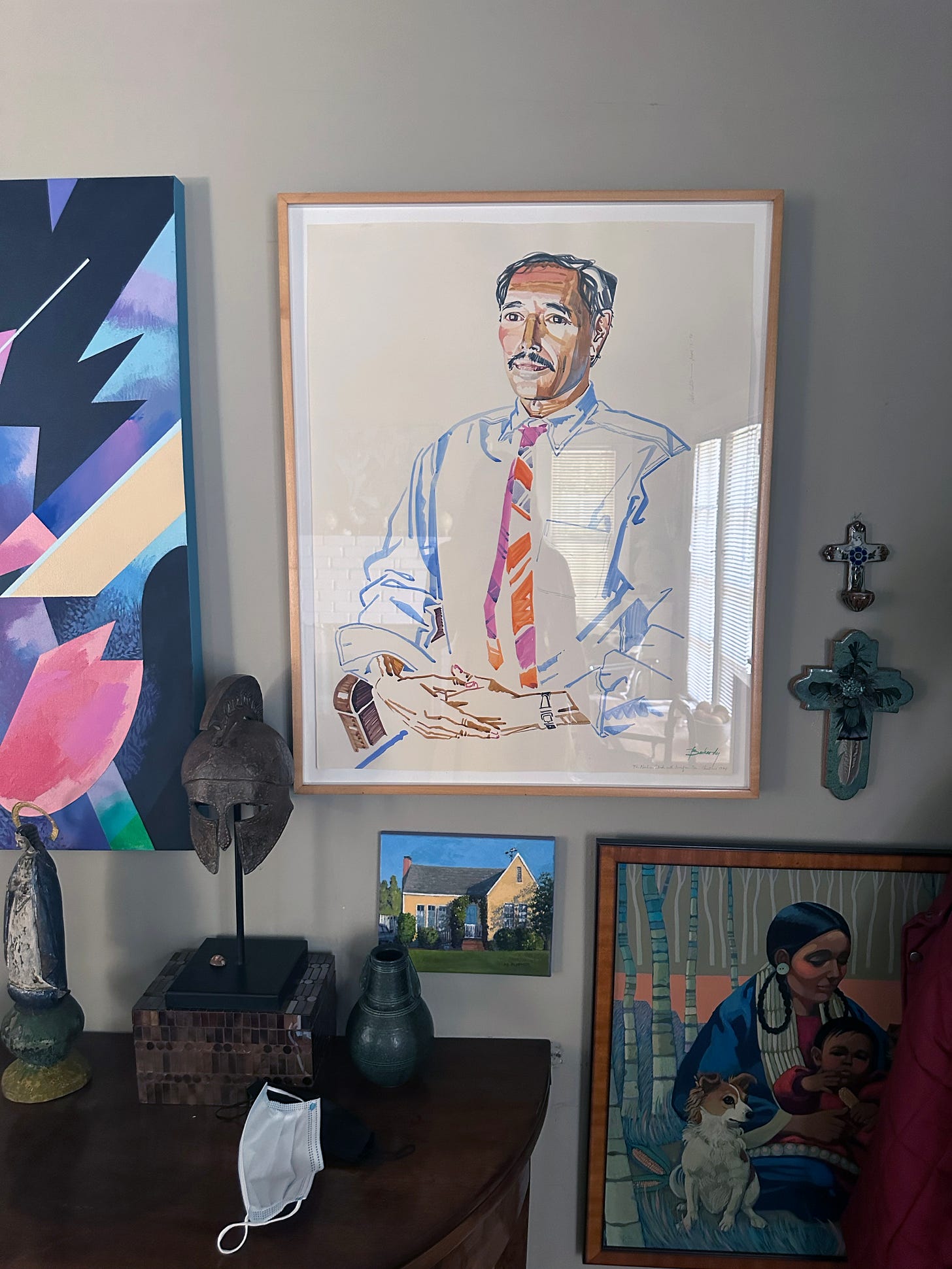 Below are some of the photographs I took in his home. At one point in our conversation, we discussed some of the art on the walls—I’ve labeled the pieces we spoke about.